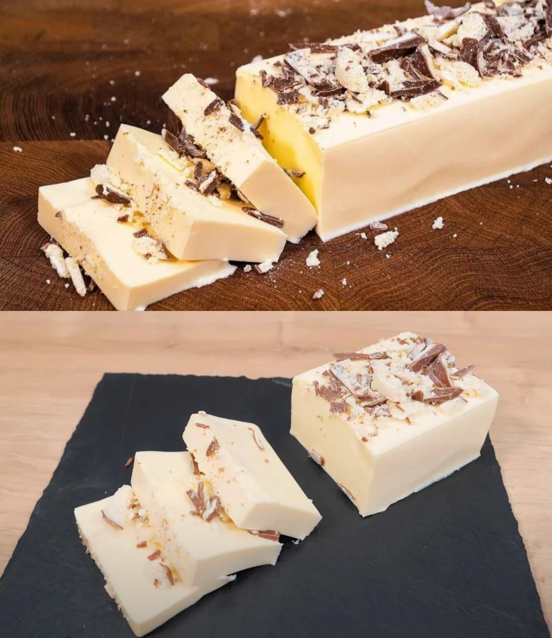 You will love this no-bake dessert. It tastes like a delicate creamy ice cream, yet doesn’t contain any complicated ingredients. Thanks to the gelatin, it holds its shape beautifully, while remaining creamy and refreshing. Ideal as a quick summer dessert that children and adults will love!