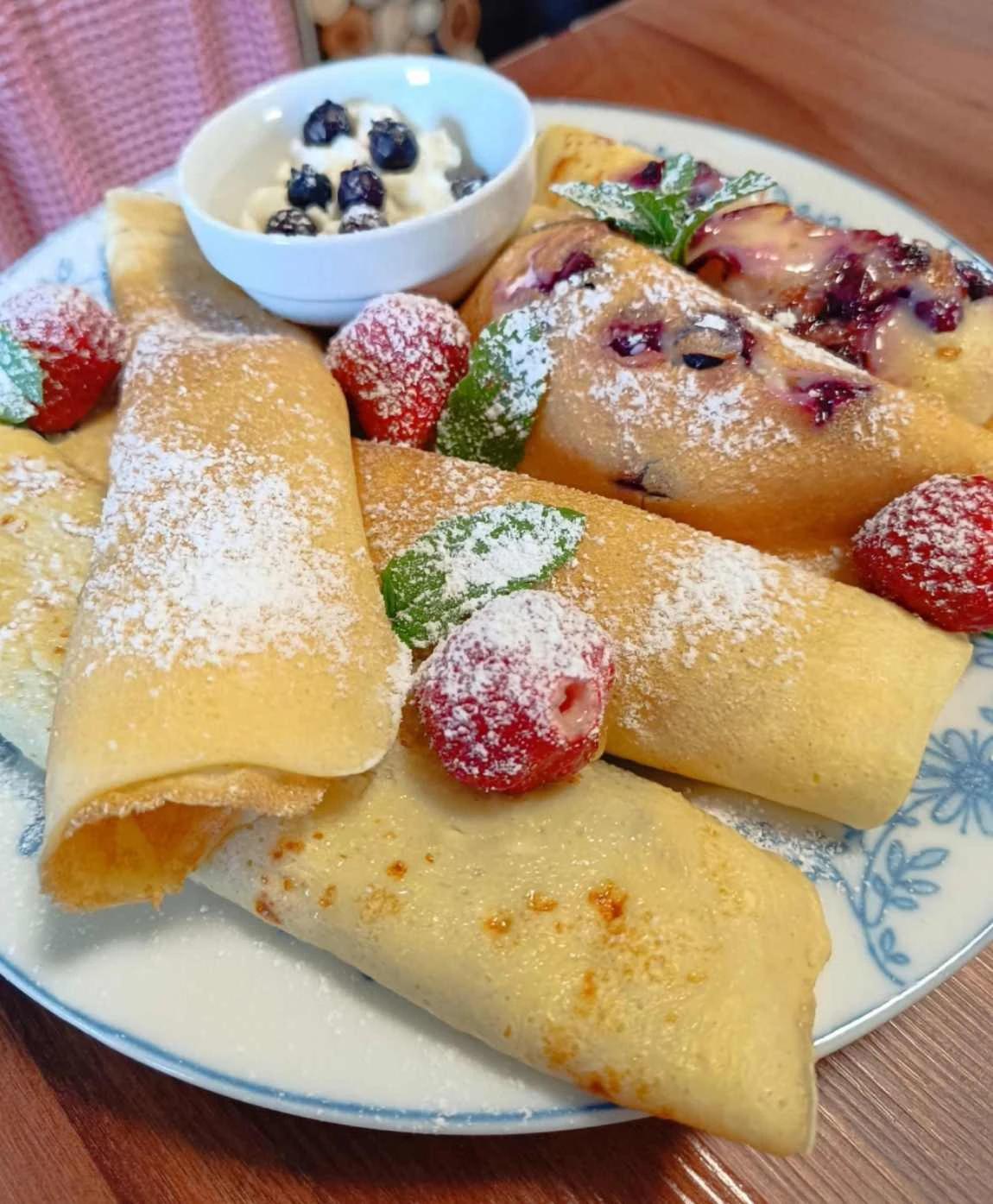 The batter can be adapted to a savory version without sugar and with fillings like spinach and cheese.