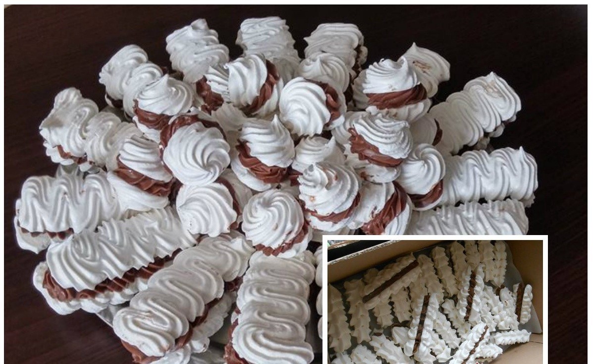 - Pipe into a pastry bag and pipe onto a baking sheet - you can make meringues, waves.... At a temperature of 90-100 degrees dry for about 60-70 minutes (you'll see it when they start to separate from the baking paper).