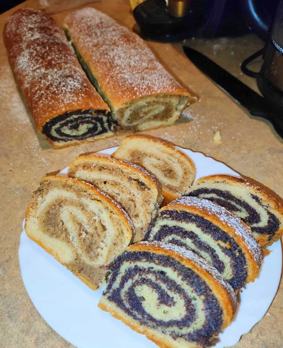 Juicy rolled pastry full of poppy seeds or nuts that stays soft even on the third day thanks to the sour cream in the dough. Ideal with afternoon coffee or tea, easy to prepare and fragrant thanks to lemon zest and vanilla.