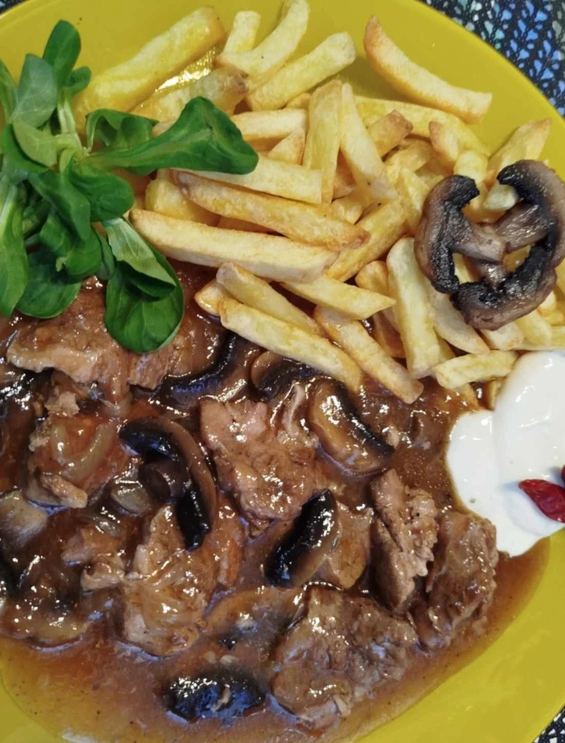 This recipe for pork neck in a mushroom sauce is an ideal choice for those looking for a hearty yet simple dish. Neck braised until tender is delicate, juicy, and together with the sauce and side creates a meal you won’t forget. It tastes great fresh, but also reheated the next day.