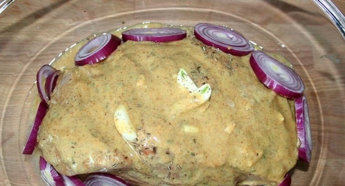 - Spread the marinade over the meat and sprinkle with herbs and leave in the refrigerator overnight.