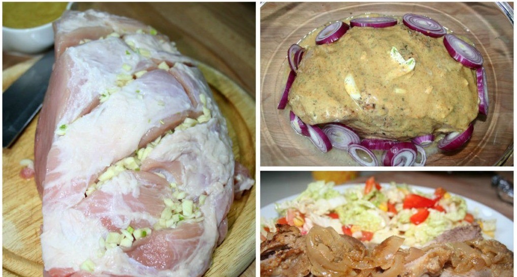 Pork roasted in mustard, just a few cuts, garlic, mustard recipe