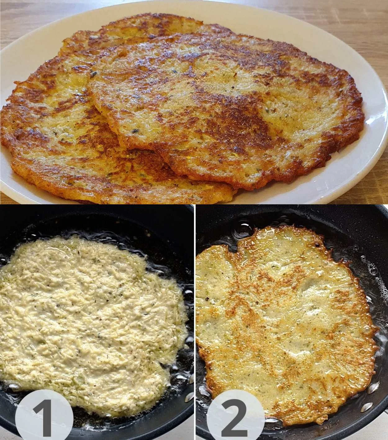 Potato and zucchini pancakes are simple, quick and tasty. They are suitable as a main dish as well as a side dish and can be served with sour cream, salad or meat.