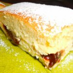 - In a second bowl we prepare the quark filling in the same way – just mix everything together (quark, sugar, pudding powder, 2 eggs and 3/4 cup milk).