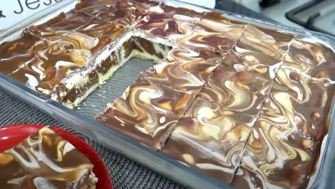 Quark cake with cocoa batter and creamy topping – an easy mug recipe that will delight you