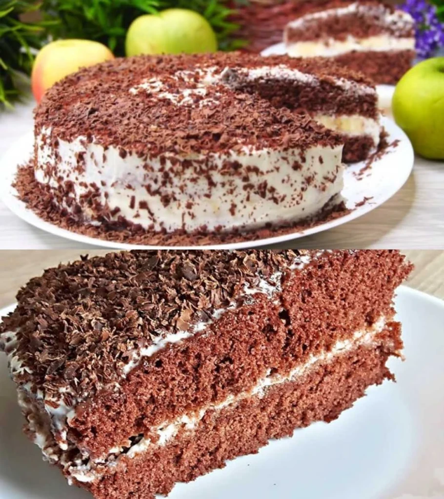 This quick chocolate cake is an ideal choice when you want to impress guests without complicated baking. The combination of moist batter, fresh cream and sweet bananas creates a harmony you won’t be able to resist. Make it for a weekend visit — success is guaranteed!