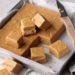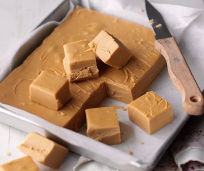 - Pour this mixture into a pan lined with baking paper and let it cool.