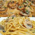 Quick one‑pan spaghetti with mushrooms are the perfect choice for anyone who wants to prepare a hot meal without complicated cooking. The recipe follows the principle „one pot“ cooking – meaning everything is cooked in a single pan, which saves time, dishes and energy. The combination of juicy mushrooms, mild cream and fragrant garlic creates a delicious sauce that coats the spaghetti and gives them a rich flavor.