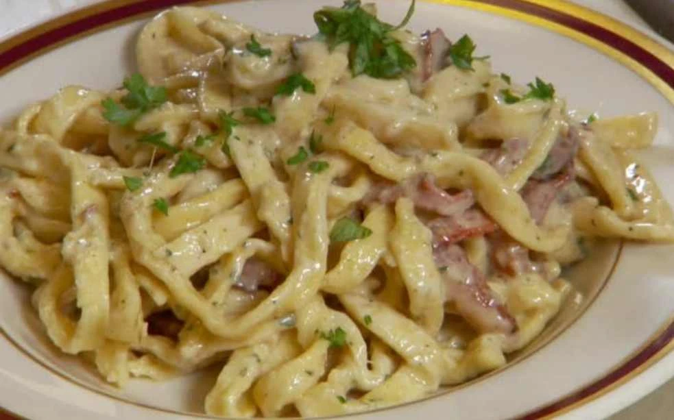 This recipe is proof that a tasty lunch can be prepared without complicated cooking and without any compromise on flavor. The combination of sour cream, garlic, cheese and bacon creates a rich and delicious sauce that pairs perfectly with any pasta. Whether you opt for classic bacon or use leftover meat from the previous day, you’ll always end up with a quick and hearty meal.