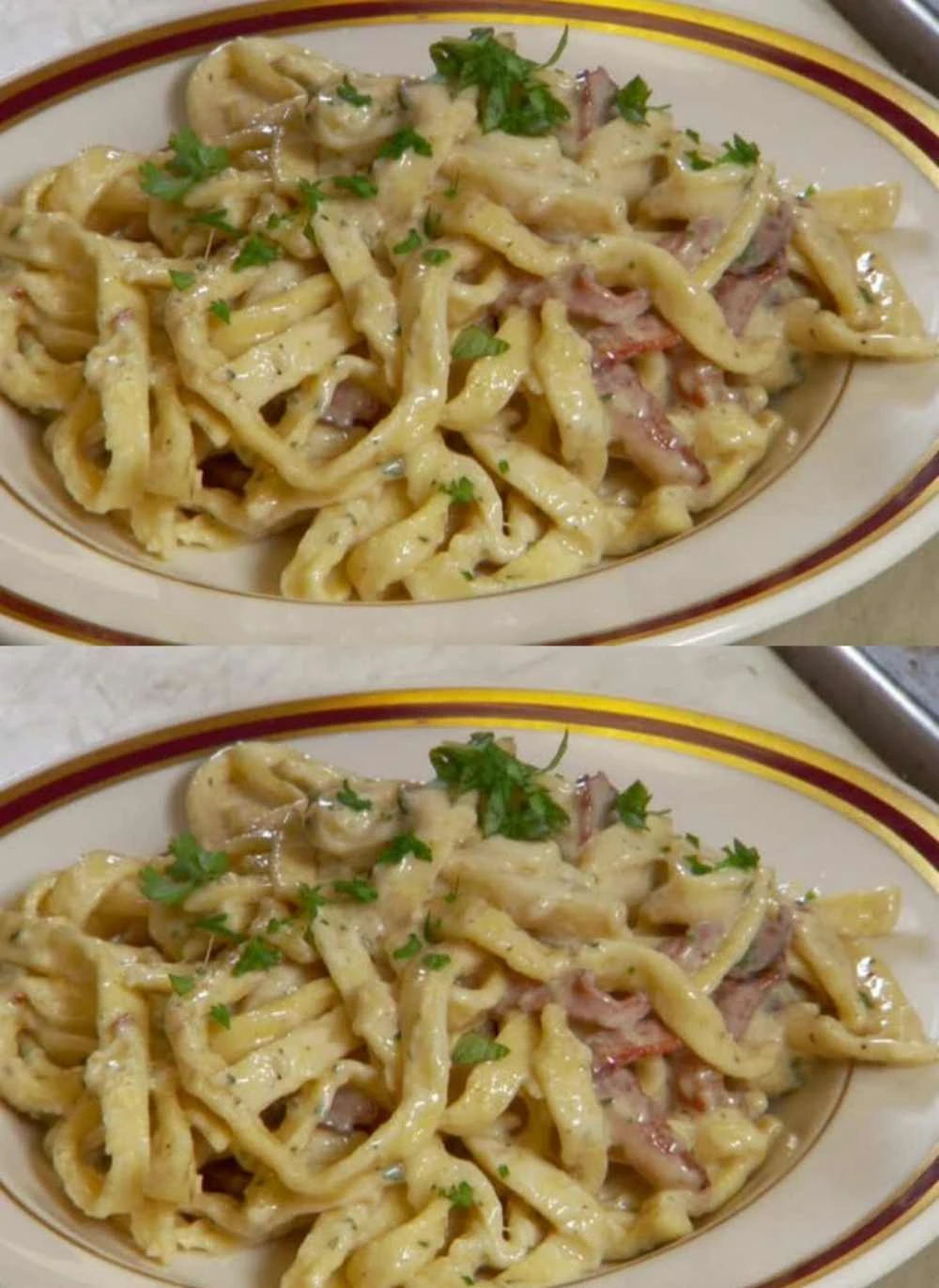 This recipe is proof that a tasty lunch can be prepared without complicated cooking and without any compromise on flavor. The combination of sour cream, garlic, cheese and bacon creates a rich and delicious sauce that pairs perfectly with any pasta. Whether you opt for classic bacon or use leftover meat from the previous day, you’ll always end up with a quick and hearty meal.