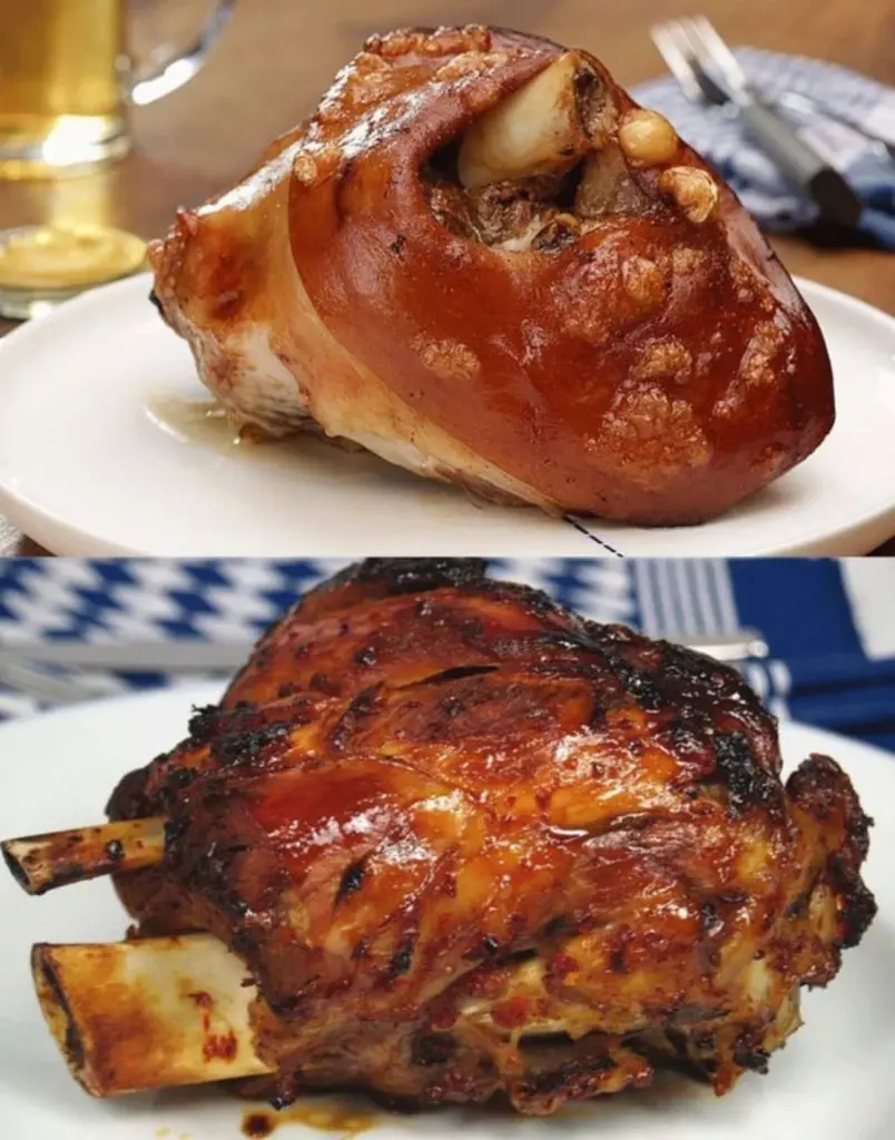 Recipe for crispy roasted pork knuckle that falls apart with a fork