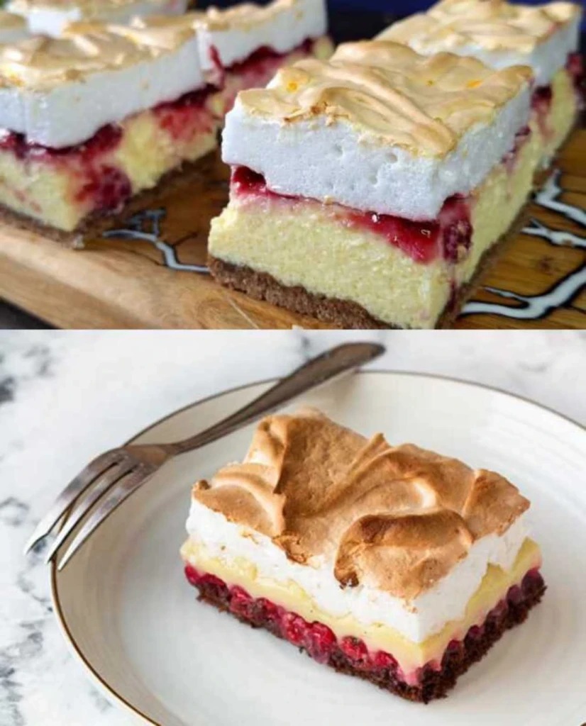 This creamy fruit cake with meringue is a true masterpiece that will please even the most demanding gourmands. With its simple preparation and exceptional taste it is an ideal choice for celebrations, family gatherings or weekend relaxation. If you love fruit cakes with a delicate meringue and a creamy base, this recipe will become your favorite.