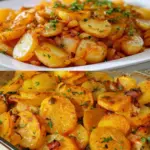 Rustic potatoes are an example of how to make an honest and satisfying meal from a few basic ingredients. The creamy sauce, crispy bacon and soft potatoes form a combination you’ll be happy to return to. Great as a quick weekday lunch or a simple dinner for the whole family.