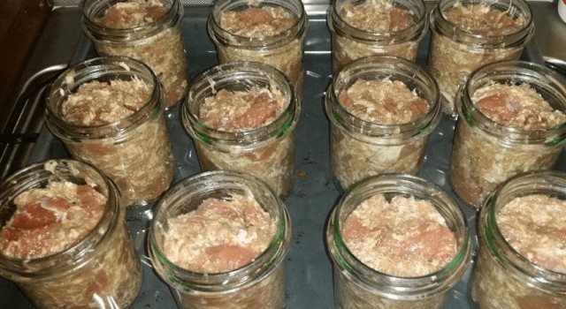 - Then layer it into clean jars. The meat needs to be pressed down in the jars as much as possible (so that as little air as possible remains in the jar)