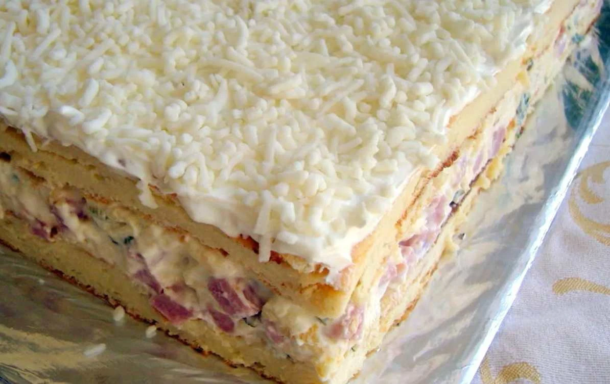 The savory cake with ham and cheese is an irresistible savory variant of the classic dessert that is perfect for celebrations and gatherings with friends. Thanks to the combination of a tender base, creamy filling, and bold cheese, it tastes truly luxurious. This recipe is a guaranteed way to impress guests without complicated preparation.