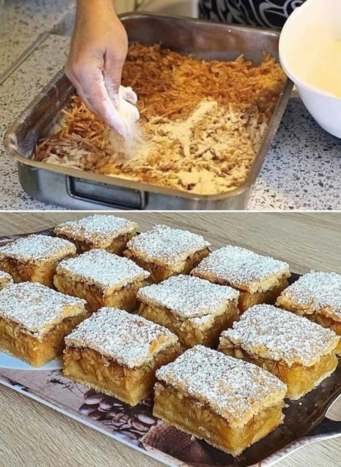 • Dry mixture: In a bowl, mix the semolina, flour, sugar, baking powder and a pinch of salt.