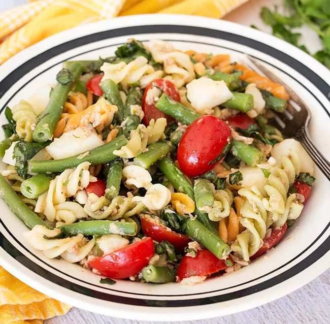 This summer pasta salad with tuna and green beans is fresh, healthy, and perfectly satisfying. Thanks to the combination of proteins, carbohydrates, and healthy fats, you’ll feel full of energy yet light. Try it as a quick dinner or a tasty lunch on the go. And if you make it for a summer barbecue, it will definitely be the first thing to disappear from the table!