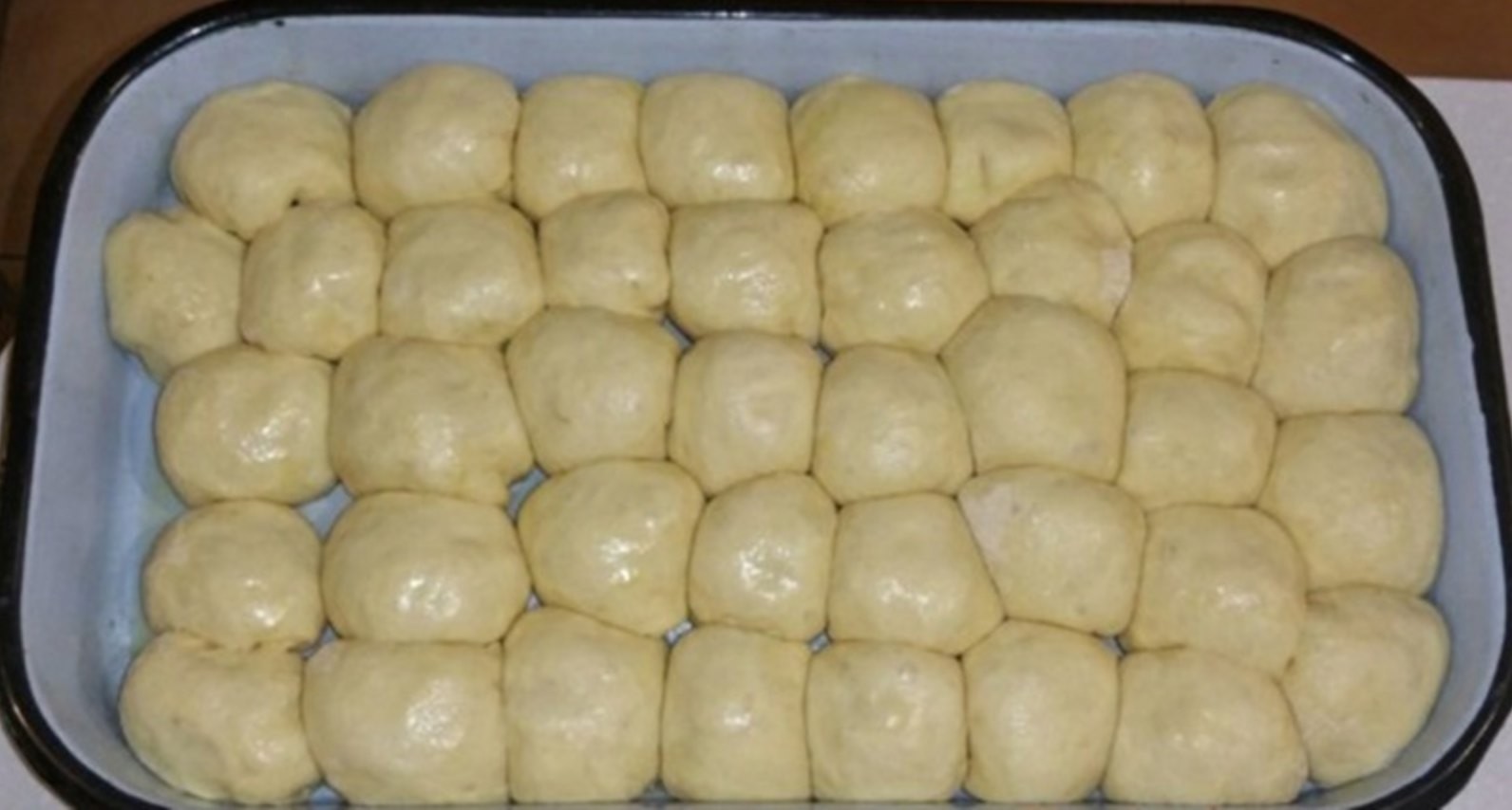 - Pour oil onto the bottom of a baking sheet or dish, turn each bun in the oil so it's oiled on every side and place them next to each other, you can press them together. Let them rise a little more and bake at 175 ° C for 25–30 minutes, until the crust is golden brown. From the same dough I also make steamed buns and dukátové buns.