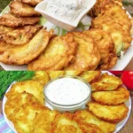 • Coating and frying Lightly coat each zucchini round first in flour (optional, helps the batter adhere better), then in the prepared batter. Heat a pan with a sufficient amount of oil and fry the zucchini rounds until golden on both sides (approx. 2–3 minutes per side). After frying, transfer them to a paper towel to absorb excess fat.