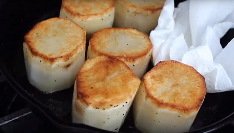 - Sauté the potatoes: Heat the vegetable oil in a pan and fry the potatoes on each side until golden.