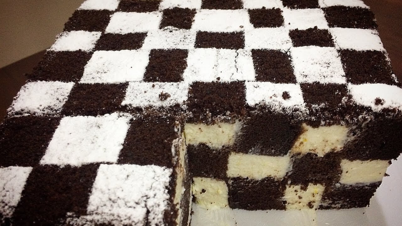 - Assembling the dessert: Cut the cooled chocolate cake into 10 even strips. Line the pan with plastic wrap or parchment paper and begin placing the strips of cake with even gaps between them. Pipe the quark filling between the individual strips of cake. Proceed in layers, applying filling between the first layer of cake and then adding the second layer of cake.