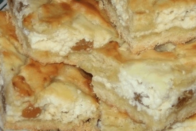 - Preparing the filling: In a bowl, beat the quark with the egg yolks, powdered sugar, lemon zest and finally stir in the raisins. Spread the filling evenly over the prepared dough.