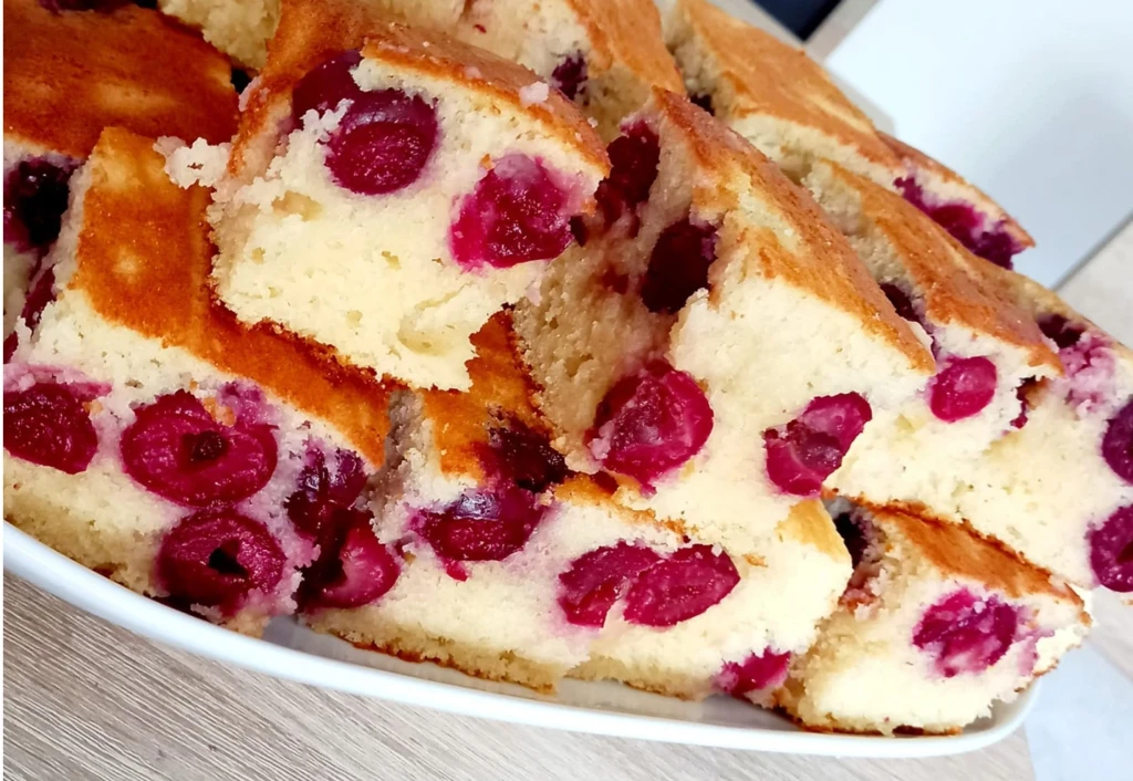 This fruit bublanina is incredibly fluffy and moist thanks to kefir. The cherries give the cake a pleasant tart flavor that pairs perfectly with the sweet batter. If you try it once, you’ll surely love it and bake it again and again!