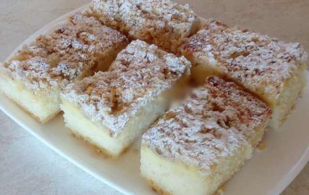 • Assembling the cake: Carefully spread the quark mixture over the prepared batter. Finally, sprinkle with the streusel, which you prepare by mixing butter, sugar, flour and crushed nuts.
