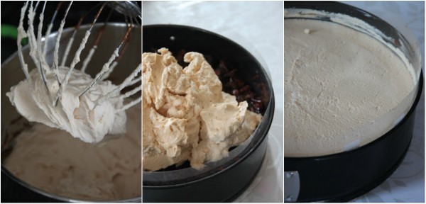 - Preparation of the filling (mousse): In a saucepan, mix the cream with the vanilla pudding mix and prepare a classic pudding according to the instructions. When the pudding is ready, add the condensed milk and stir well. Pour the pudding mixture over the layer of cookies in the cake pan and smooth the surface again. Place the pan in the freezer for an hour.