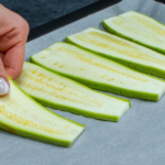 • Generously sprinkle the zucchini slices with salt and pepper and let them rest for 15-20 minutes to allow the flavors to meld.