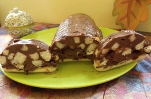 Chocolate cake with cream and ladyfingers recipe