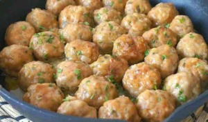 Meatballs with grated vegetables and potatoes on one baking sheet recipe