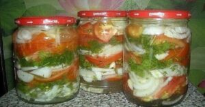 No canning: Pickled tomatoes with onion in a sweet-and-sour brine…
