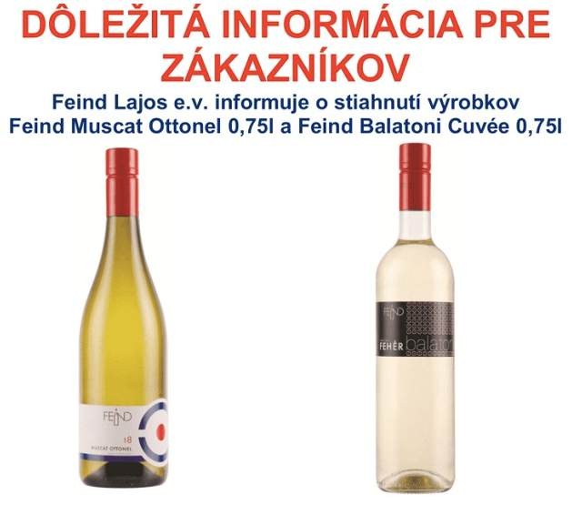 On its official page LIDL warns that it is removing two types of wine from the shelves. These are ,, Feind Muscat Ottonel 0,75 l “and ,, Feind Blatoni Cuveé 0,75 l”, with the producer being Feind Lajos ev. On the labels of both products there is a warning about allergenic sulphites only in English.