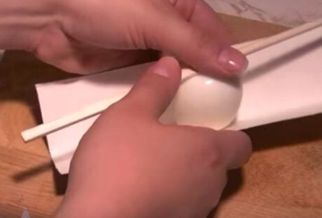A hard‑boiled egg and romance? Yes! While the egg is boiling, gradually prepare a piece of cardboard cut from a milk carton, two large sturdy rubber bands and a skewer (you can alternatively use a clean pencil or a brush handle). After boiling the egg, peel off the shell, place it in the folded cardboard, secure the skewer and fasten the package with the egg using the rubber bands. It’s important to work with the egg while it’s still hot. Finally, chill it in the refrigerator for an hour. After unwrapping the package, simply cut it in half and say: I love you, my darling!