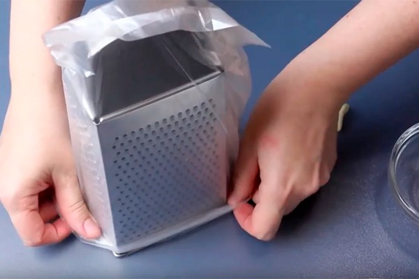 • take a grater and slip a heavier-gauge plastic bag over it,