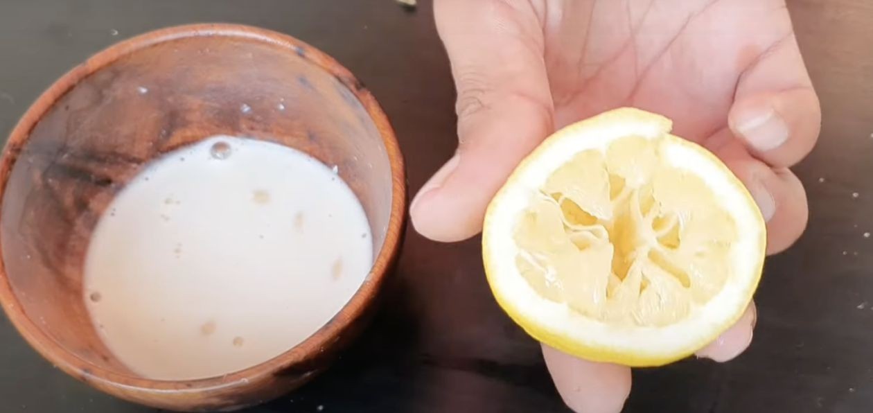 5.) Mix everything thoroughly and then dip the squeezed half of the lemon into this mixture.