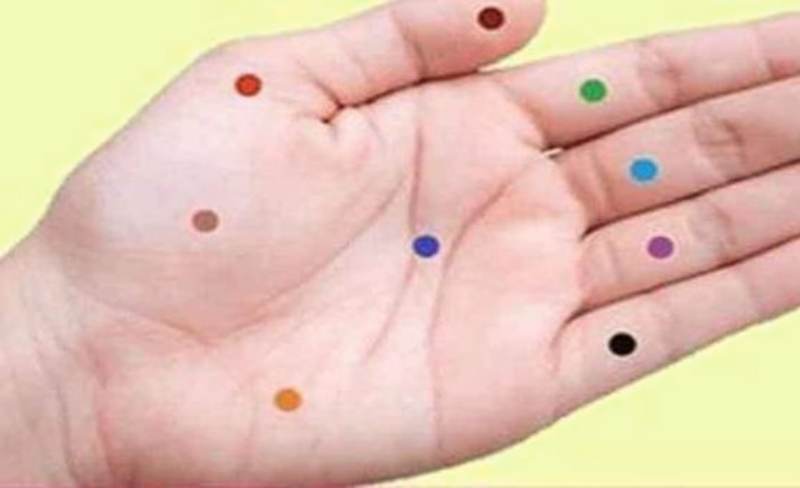 Simple trick: I pressed the purple point and the headache disappeared in a minute! Black helps digestion, orange treats inflammations