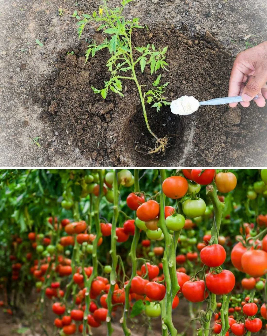 Tomatoes should be planted deeply – about two-thirds of the plant should be below the soil surface. Tomato stems can form roots along their entire length, giving the plant greater stability and better nutrient uptake.