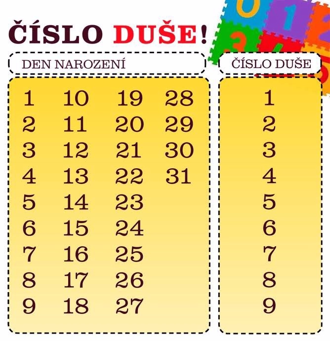 To find your soul number, you must locate the day you were born in the table. In the column next to it you will then find your soul number. You can read its description in the text below. Knowing the meaning of your soul number can be a help when choosing the right profession or when making other decisions.
