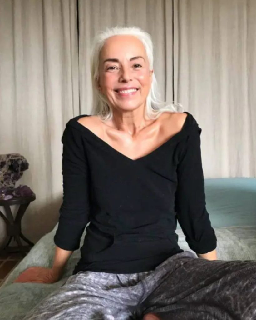 I use a lot of oil on my skin. I put rapeseed oil on my hair. Once a week I cleanse my skin with olive oil and sugar and every day I eat avocado and organic meat and fish. I don’t do more than that. However, I think it is very important to be content with yourself at every age.
