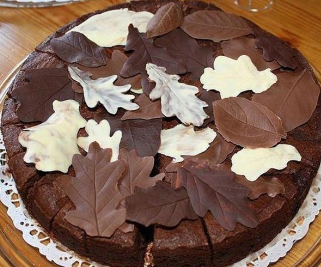 The following method is not the easiest, but it’s worth trying – the effect is amazing. We will need washed and dried leaves. First chop the chocolate, place it over a water bath, melt it and apply it to a clean, dry leaf using a brush. Put the chocolate-covered leaves into the fridge for one hour and then carefully remove them from the leaves.