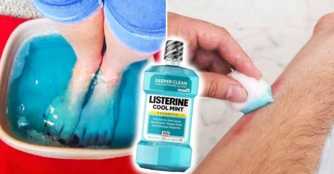 Treats skin conditions: Do you have problems with a skin rash or another condition? Try applying mouthwash on a cotton pad or a cotton swab. With regular use you’ll soon be fine. It is enough to soak your feet for 30 minutes in a solution with Listerine and the mycosis will be gone.
