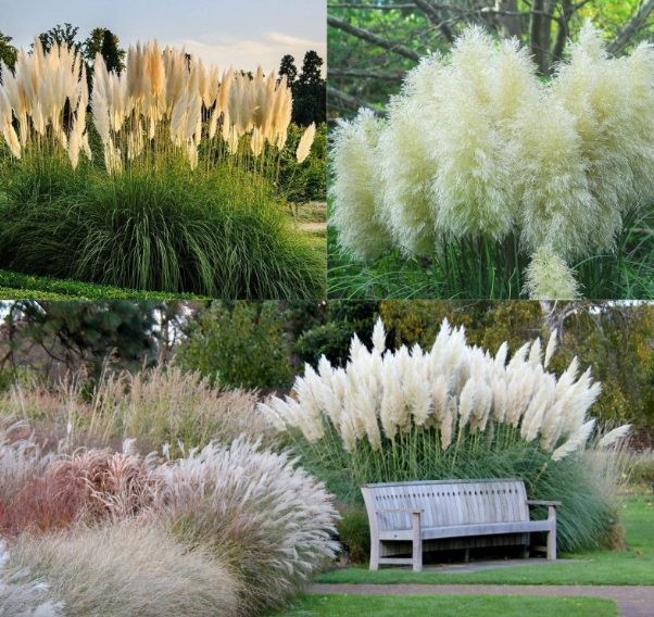 Cortaderia is also a very elegant ornamental grass. It blooms from August until the frosts, creating silver, pink and golden-yellow inflorescences. In winter it will perfectly decorate your apartment if you leave the dried flowers in a vase.