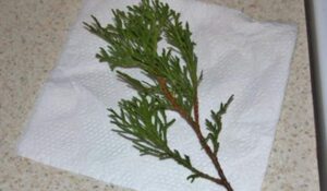 1. Treating with rooting hormone: The cutting must be treated with rooting hormone before planting. A product called Incit is available in garden stores. Moisten the thuja branch, dip it into the rooting hormone powder, and gently shake off the excess.