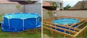He bought a cheap pool at the supermarket and put lots of planks around it in the yard. The final result is stunning!