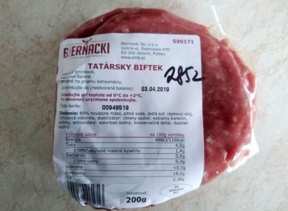 The latest checks revealed that such meat even reached the shelves of Slovak stores. E. coli was found in the tartare: “Steak tartare – meat product, vacuum-packed, 200 g”, production batch: 00949519 with best-before date 3.4. 2019, “ states the svps.sk website. The Biernacki company’s tartare was found in the Lidl chain in Nemšová in the food warehouses on Púchovská Road. It was a targeted inspection focused on Polish beef.