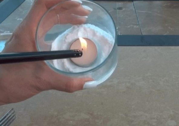 1. Pour a 1 cm layer of baking soda into the bottom of the container.