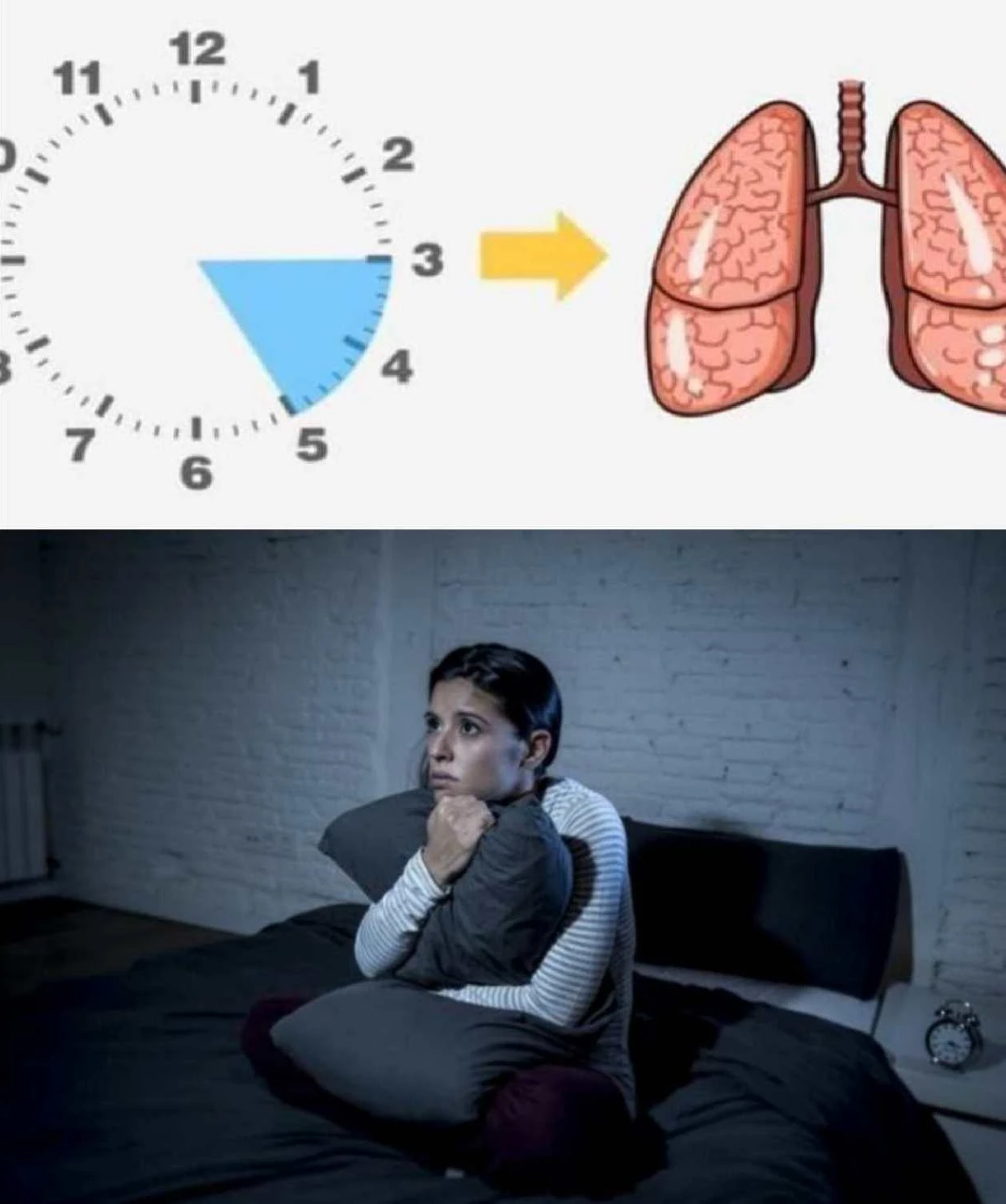 This is the time when the lungs gather oxygen and distribute it throughout the body. At the same time they are cleansing and preparing for the new day. If you often wake up at this time, it may be a signal that your lungs are suffering due to smoking, polluted air or chronic respiratory problems.